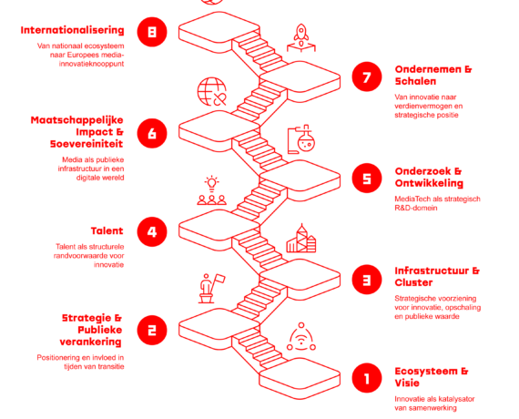 Centraal in de agenda staat het versterken van de MediaTech-laag in het ecosysteem: de plek waar data, technologie en creatie samenkomen en waar in toenemende mate waarde ontstaat.